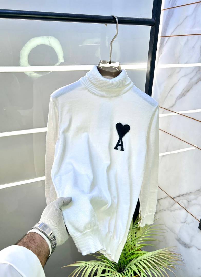 Ami Logo Imported White High Neck Premium Pullovers F3391-WH