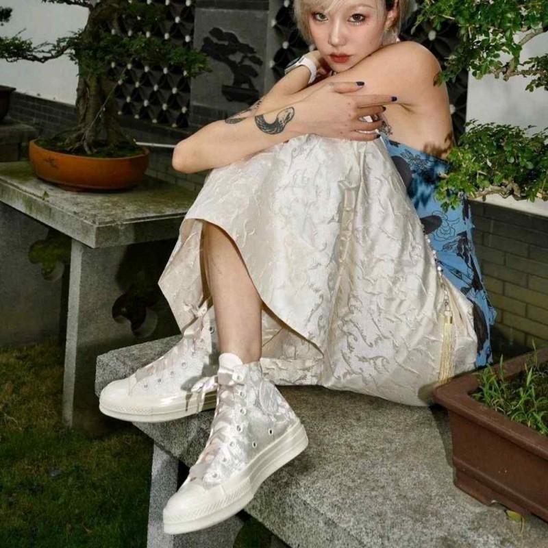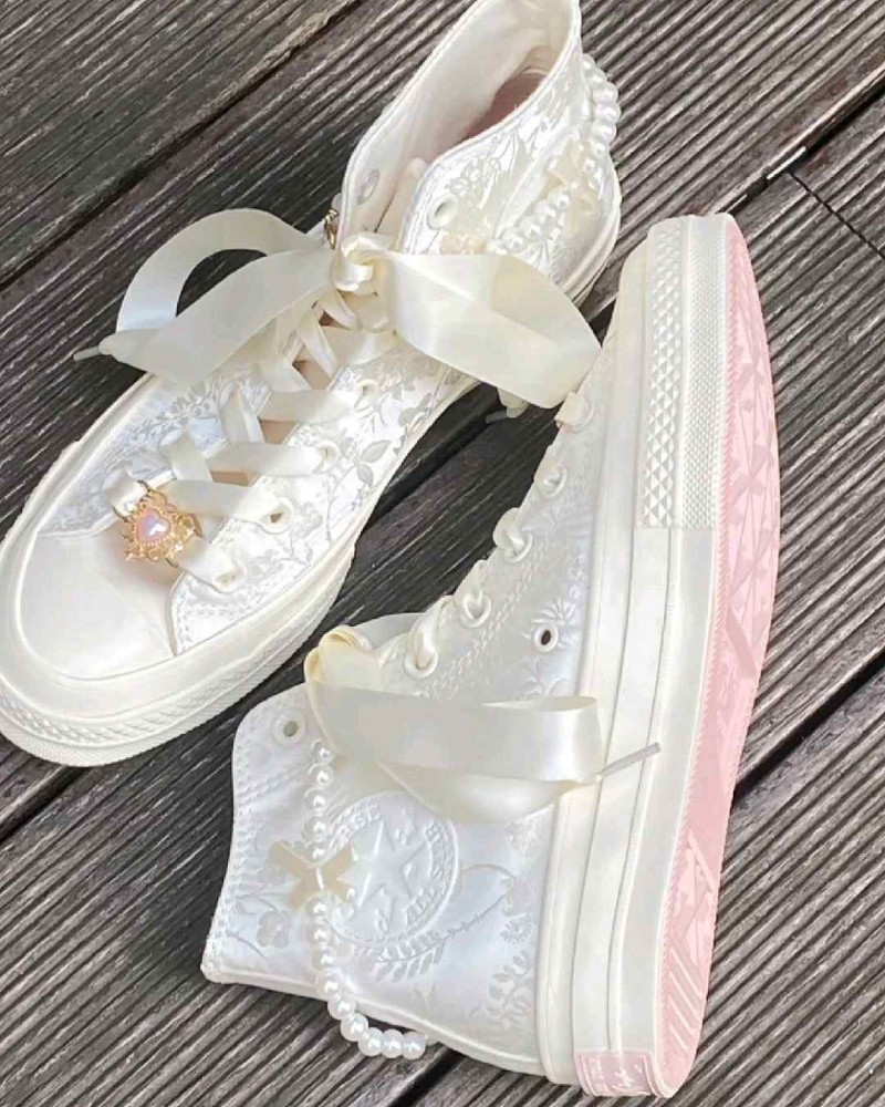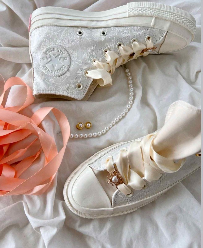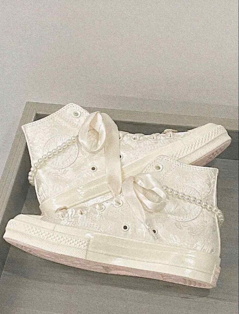 • Conversse 1970s Wedding Brocade High top white